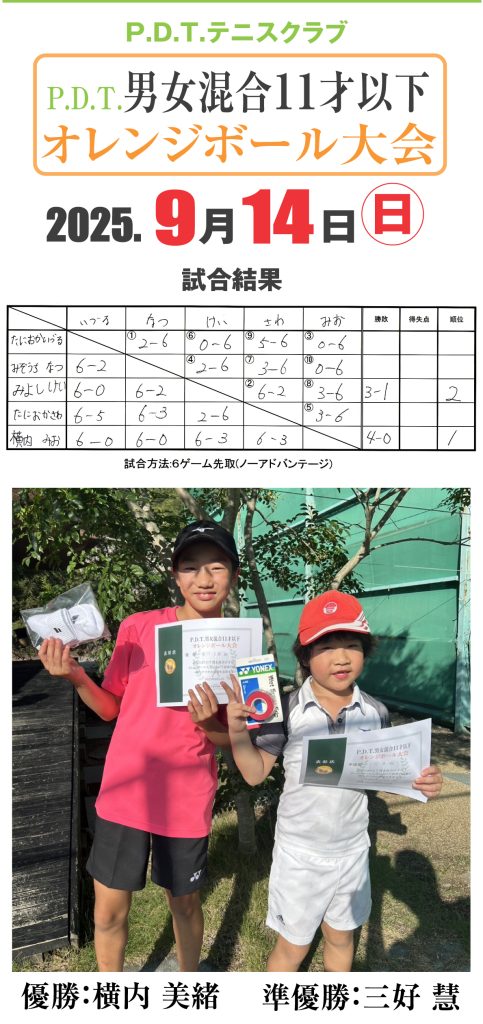 【結果】P.D.T.男女混合11才以下オレンジボール大会(2025.9.14)