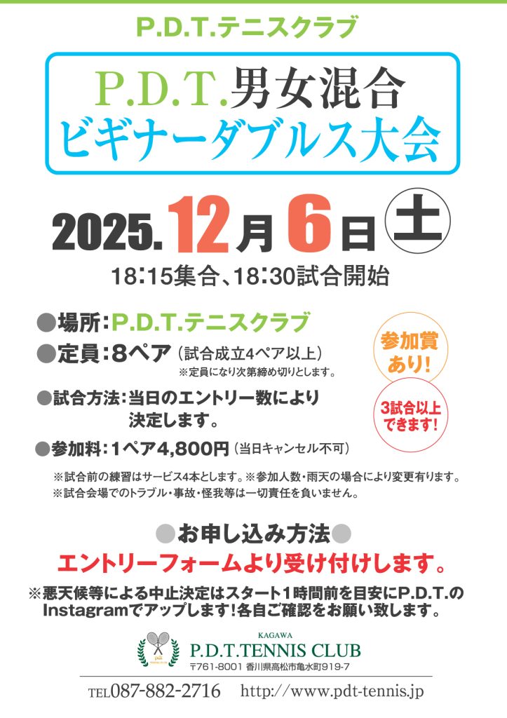 P.D.T.男女混合ビギナーダブルス大会(2025.12.6)