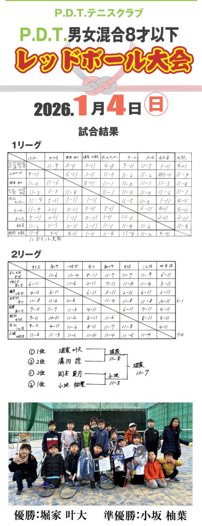 【結果】P.D.T.男女混合8才以下レッドボール大会(2026.1.4)