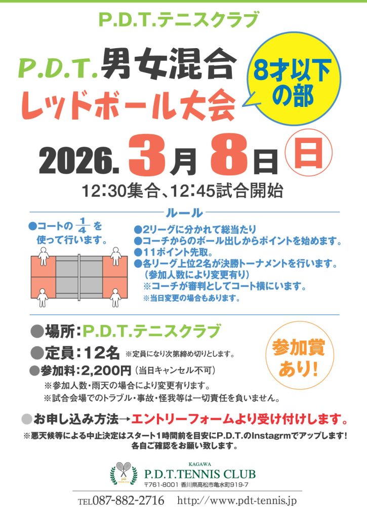 P.D.T.男女混合レッドボール大会8才以下の部(2026.3.8)
