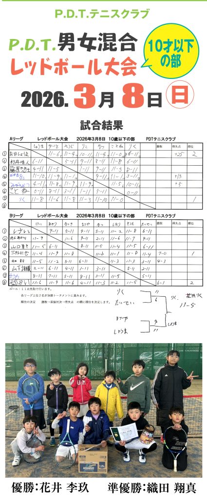 【結果】P.D.T.男女混合レッドボール大会10才以下の部(2026.3....