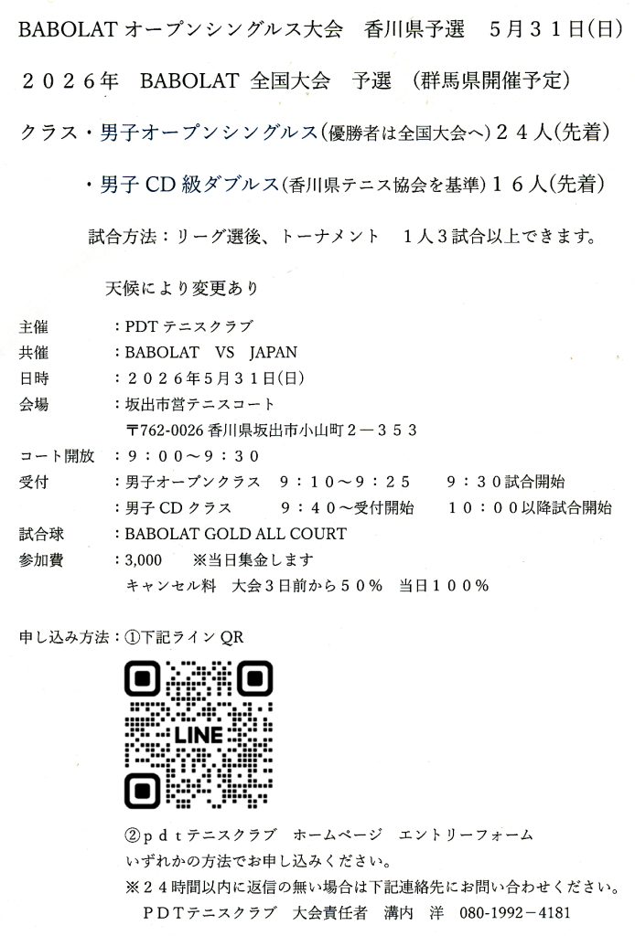 BABOLAT オープン・男子オープンシングルス・男子CD級ダブルス(2026.5.31)